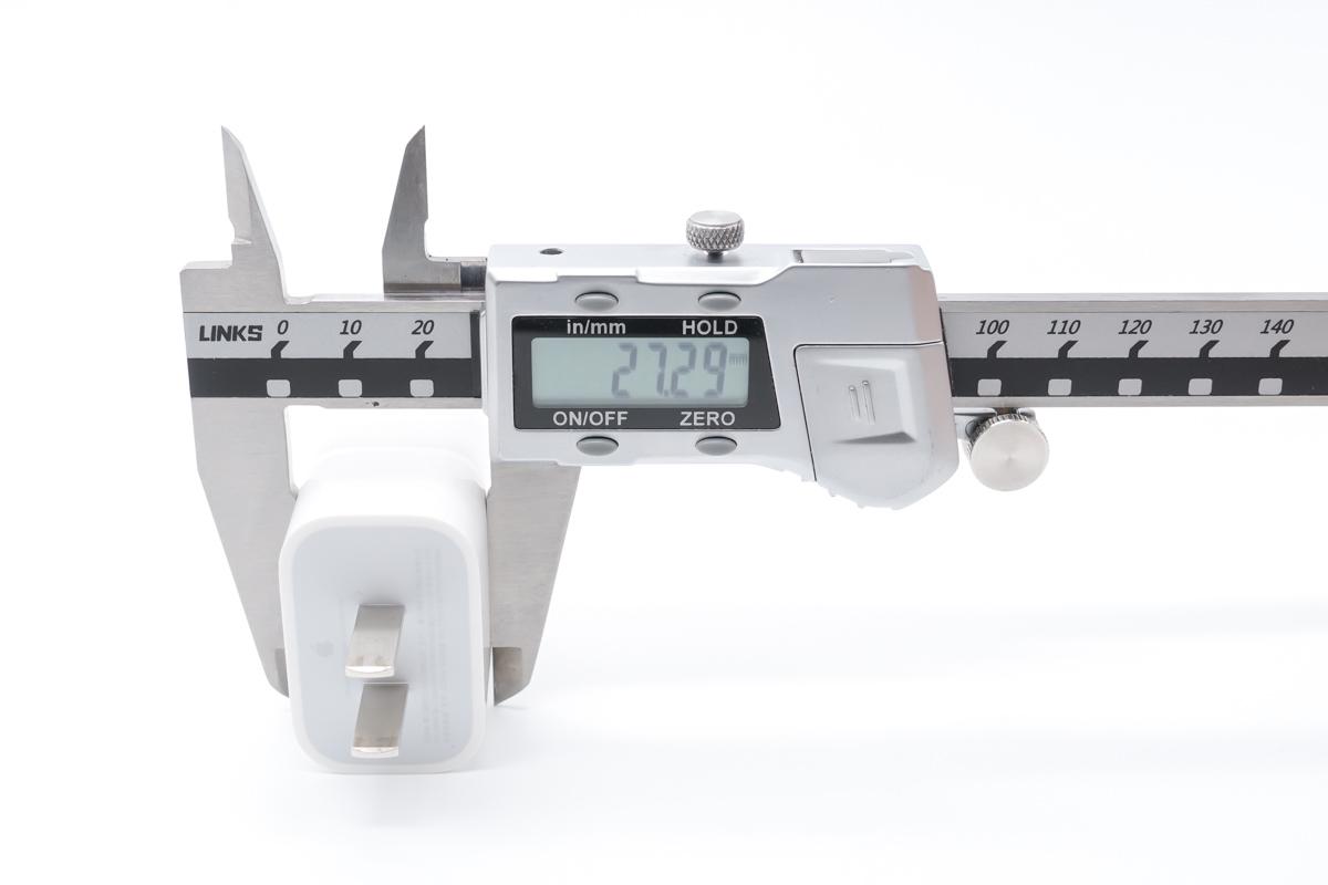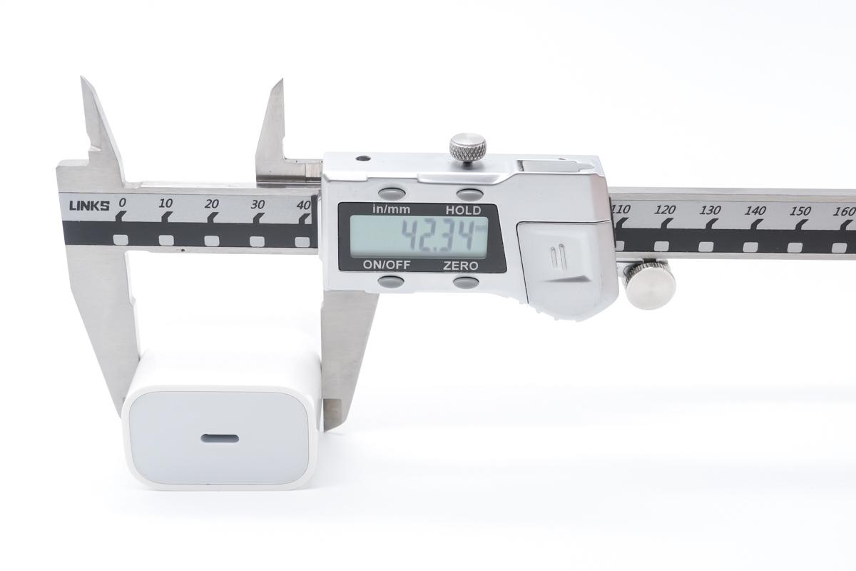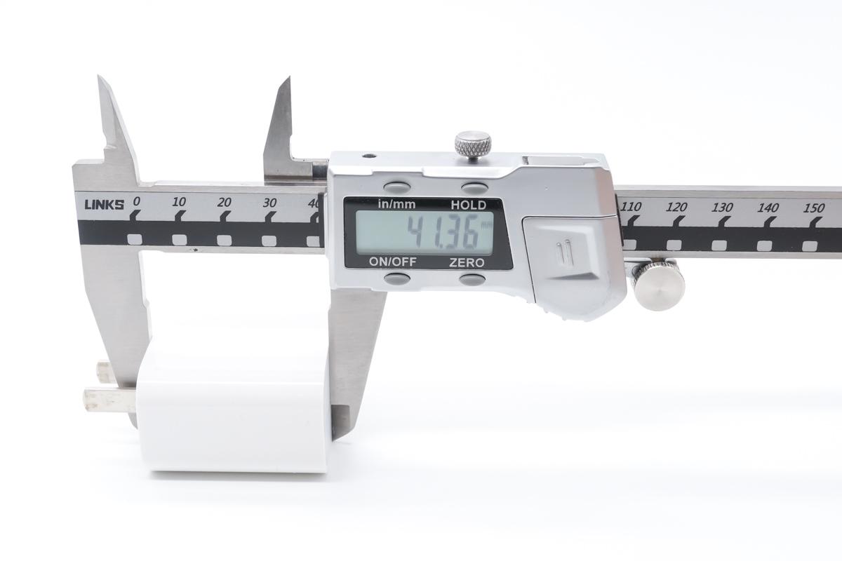 三围这里,使用卡尺实测充电器的长度约为41.36mm(不含插脚)。