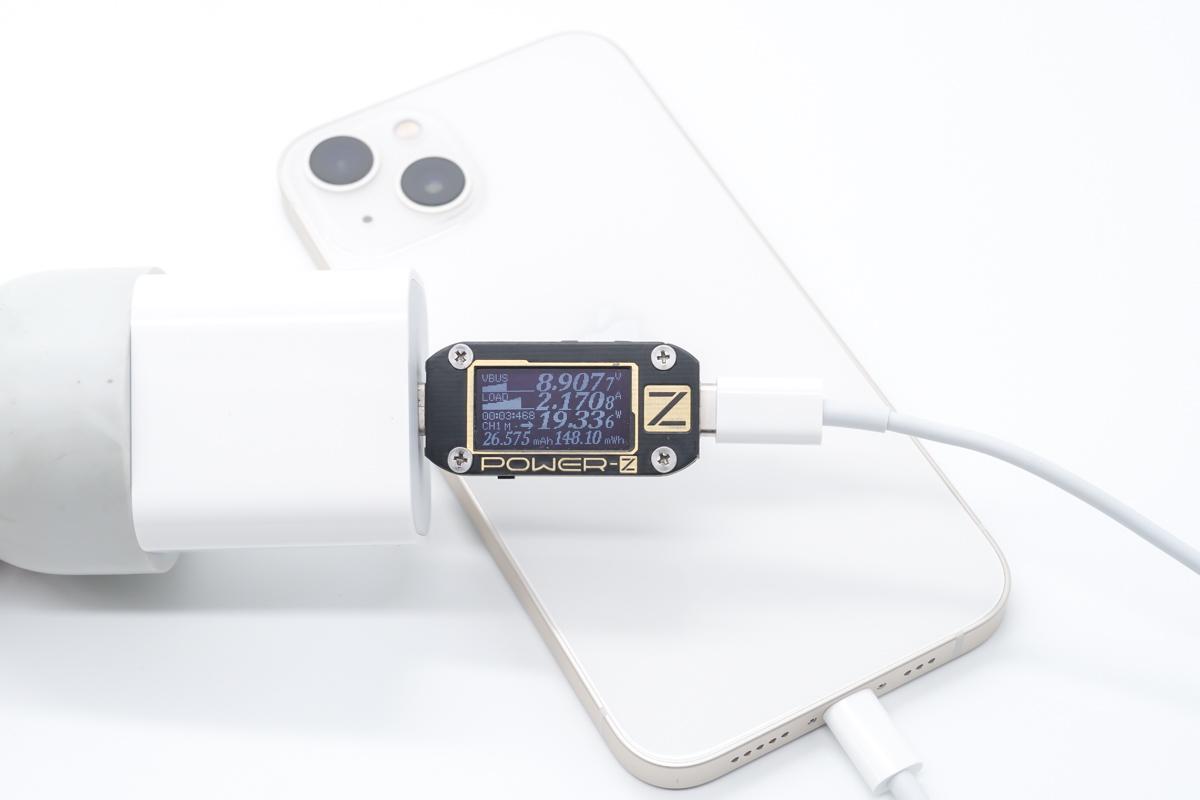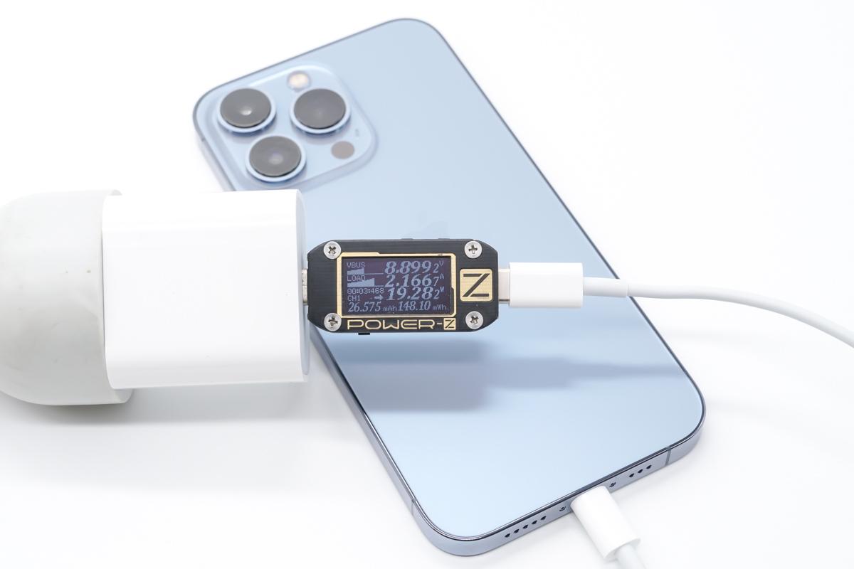 使用苹果20W PD充电器为iPhone 13充电,功率为8.90V 2.17A 19.33W。