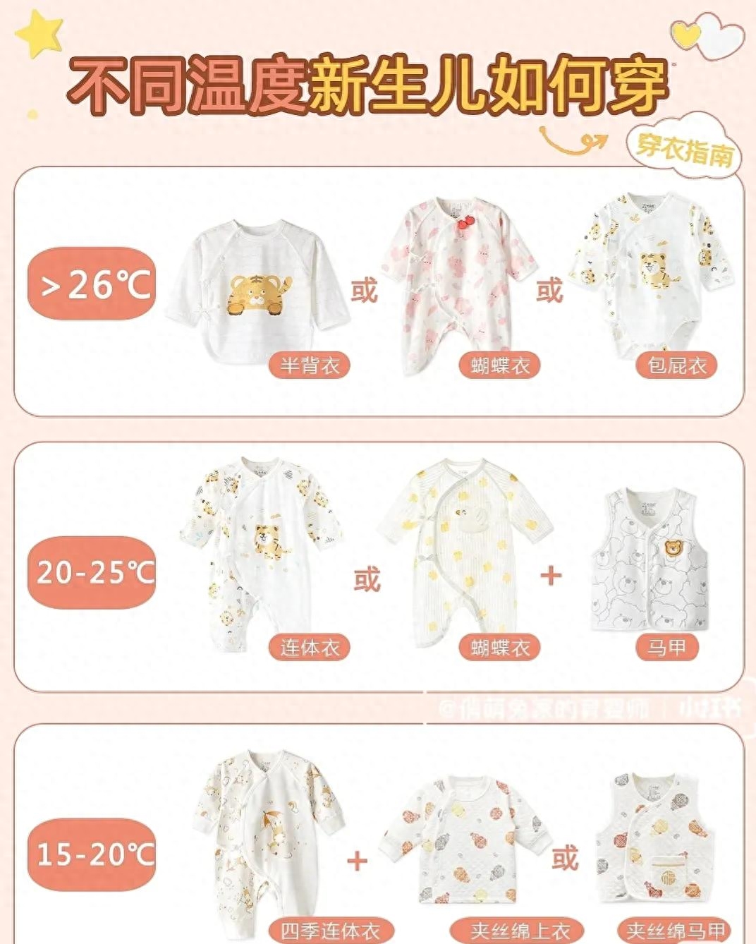 新生儿:比成人多一层。(当然如果宝宝容易起痱子,就不能按这个标准来了,带娃要灵活多变,因为每个娃生长发育不一样的)