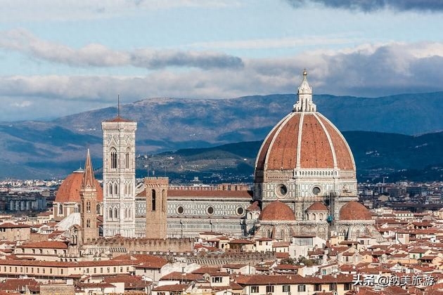 佛罗伦萨大教堂位于徐志摩笔下的“翡冷翠”,即意大利佛罗伦萨。这座教堂建筑群由大教堂、钟塔与洗礼堂构成,是世界上少有的妩媚的教堂。用红、白、绿三色花岗岩贴面很好地诠释了文艺复兴时代的古典、优雅与自由。著名的梵蒂冈圣彼得大教堂实际上是模仿它设计的。连米开朗基罗本人也感叹道:“可以建得比它大,却不可能比它美”。