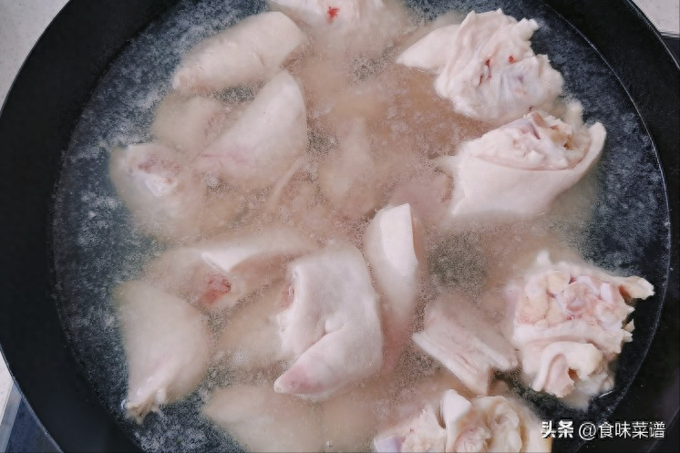 2、焯水的过程中,不建议盖锅盖,这样有利于腥味散发,把捞出来的猪蹄,放入温水中,仔细冲洗一遍,注意别用凉水洗。