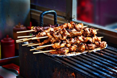 2、总感觉烤羊肉串还是快烤好时刷孜然粉,辣椒粉才够好吃。