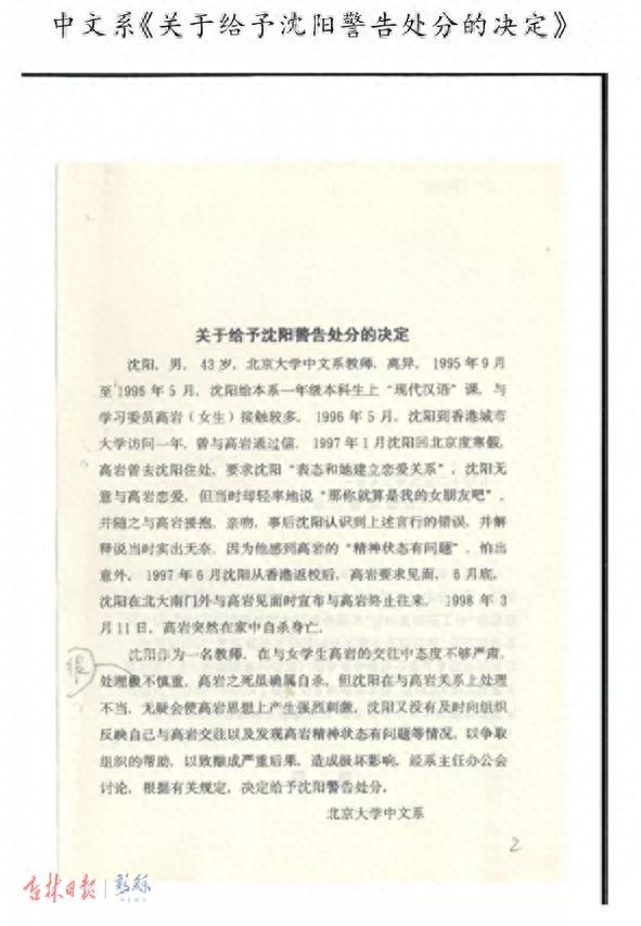 经查阅资料,二十年前,即1998年3月,北京市公安局西城区分局对这一件事作出事实认定,给出调查结果;1998年7月北京大学对沈阳做出了行政处分。