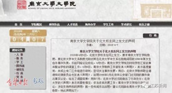 4月6日,南大文学院发布声明回应“沈阳事件”:承认人才引进程序不严谨,愿意接受处分;并建议沈阳辞去南京大学文学院的教职。