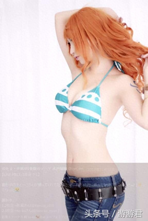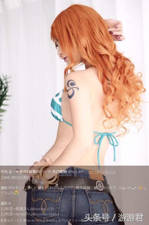 话说のたま的身材真是有够杀,比基尼配上牛仔裤这身搭配还真是赞,距离这次的角色扮演,上一次离这套服装最近的服装,就属航海王的娜美了,不过下图的美图有修饰过,所以看起来会十分美好,但...大家应该也注意到了啦XD