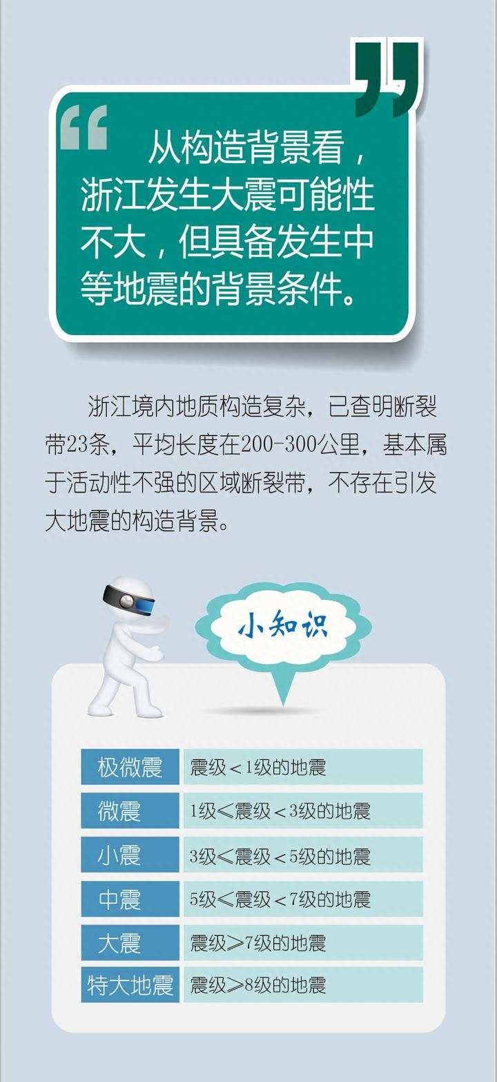 从构造背景看,浙江发生大震可能性不大,但具备发生中等地震的背景条件。