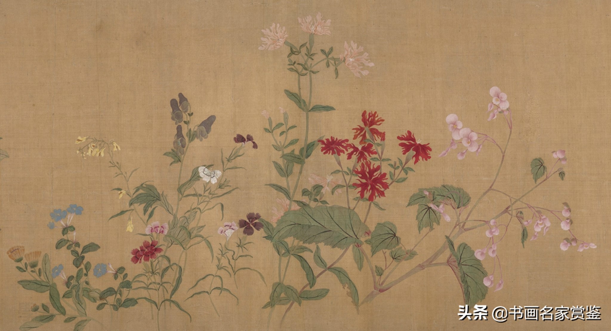 清·恽寿平没骨画精品《百花图卷》32×228cm 、手卷 、绢本,美国大都会博物馆藏