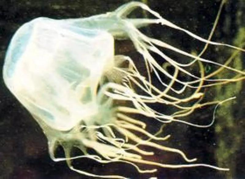 澳大利亚箱型水母有60条3米长的触须,每条触须上布满了储存毒液的刺细胞。其重要特征是伞体呈立体箱形状以及有四条较粗壮的触手。它的触须可达3米长,每条触须上布满了储存毒液的刺细胞。澳大利亚箱形水母(俗称海黄蜂) ,是世界最毒的动物,它的刺细胞所释出的毒性比眼镜蛇还要毒,箱形水母的触须上生长着数千个储存毒液的刺细胞,不仅恶意的攻击,就连贝壳或皮肤不经意的剐蹭都会刺激这些微小的毒刺。只要有谁胆敢招惹它,它就会疯狂地给任何人或东西注射已知最有效的神经毒素。可以让人在30秒内死亡。