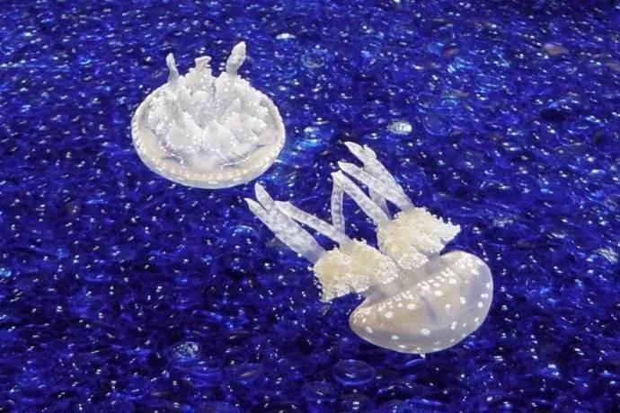 [1]澳大利亚箱形水母是一种淡蓝色的透明水母,形状像个箱子,有4个
