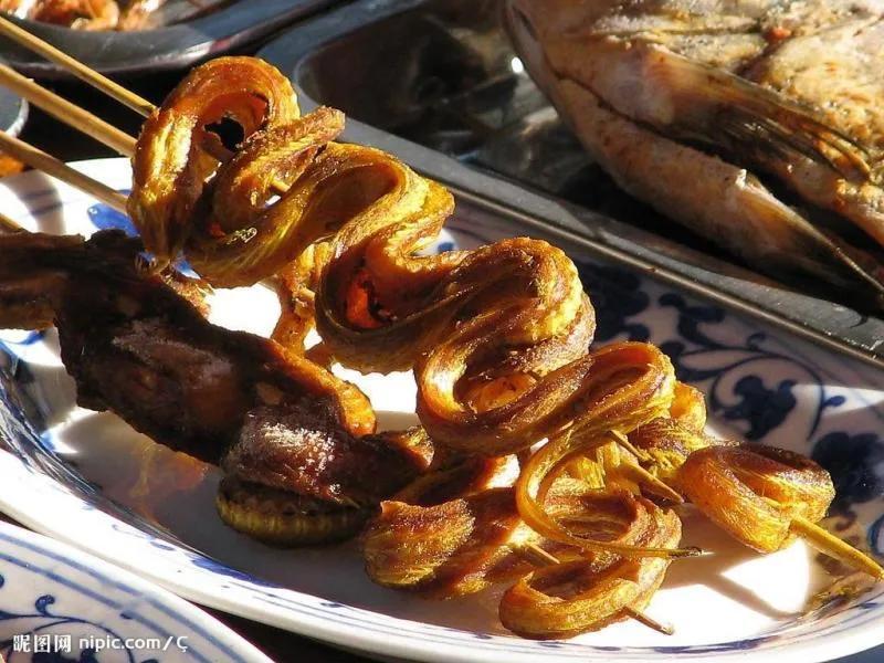 海蛇的食法很多,海蛇肉可清蒸、红烧、煲汤。其中海蛇炖火鸡是有名的"龙凤汤"。海蛇肉煲粥是清凉解毒之美食佳肴。海蛇汤鲜甜可口。海蛇酒可作为驱风活血、止痛良药。