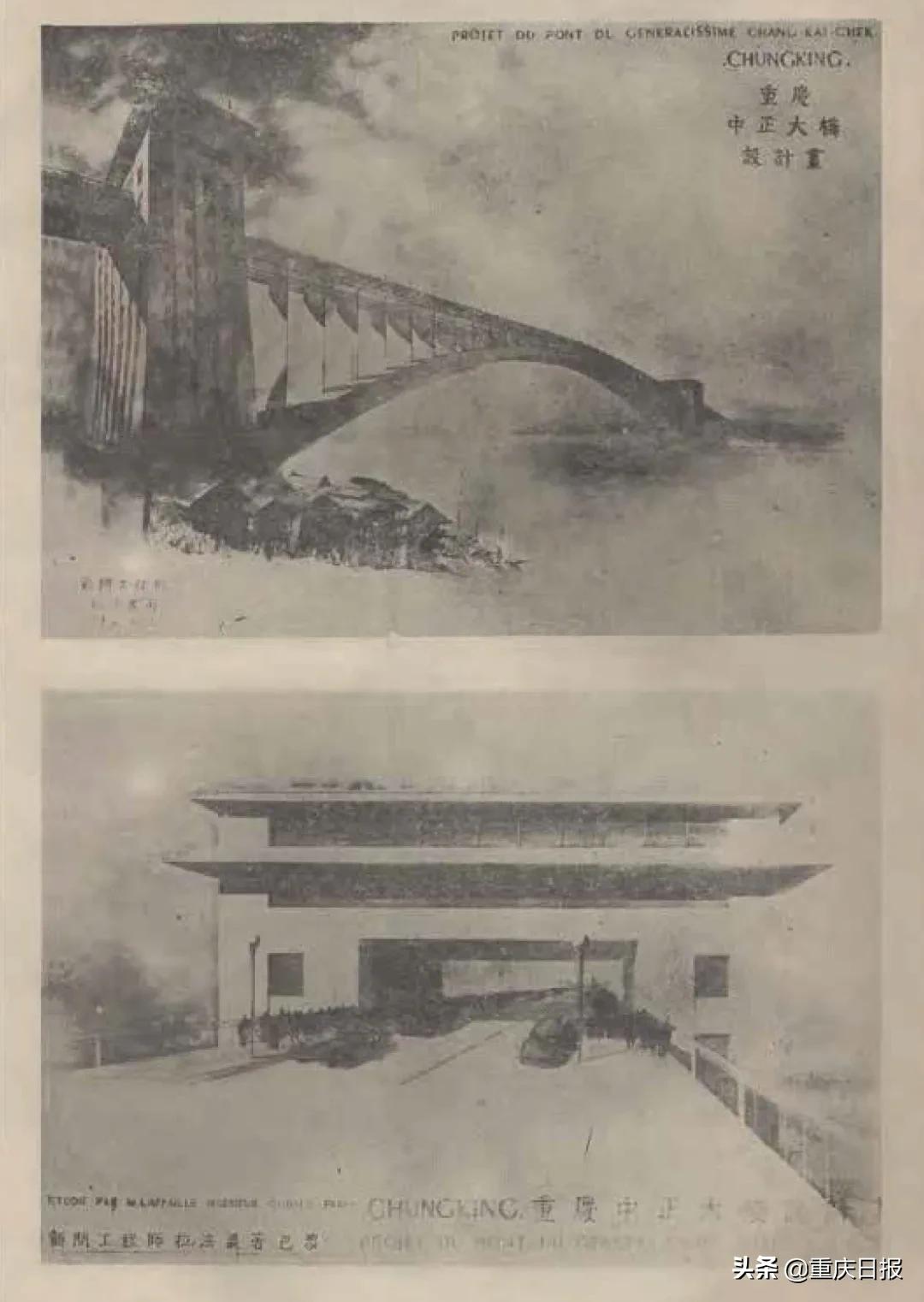 (早在民国时期,重庆政府及民间各界便曾多次动议修建两江大桥,但均因工程浩大、耗资过巨等原因而作罢。图为1947年《新重庆》中的扬子江大桥设计效果图)