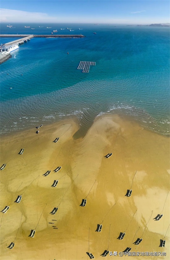 ▲ 福州市平潭县澳前客运码头,一半是黄沙,一半是碧海。摄影/李艺爽