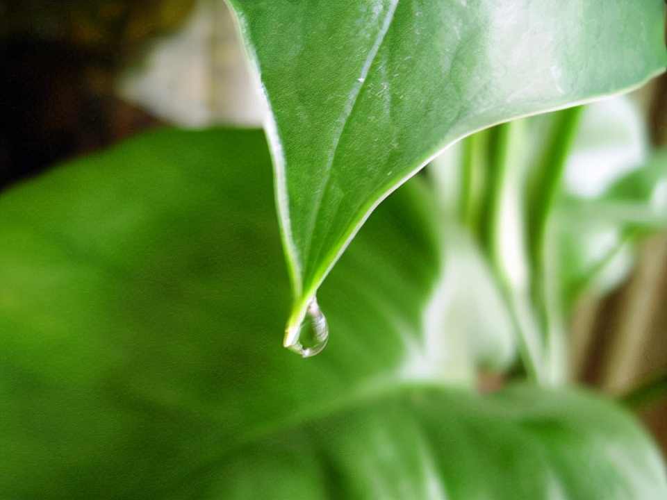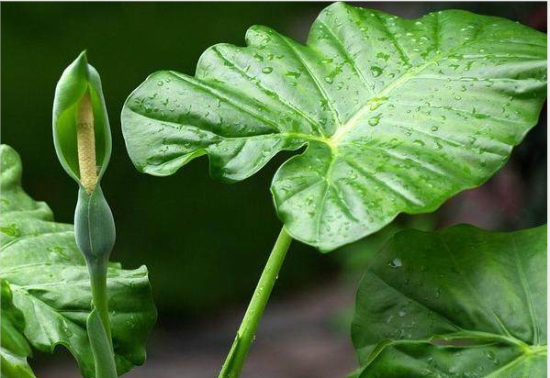 滴水观音的叶尖能够滴水。它是天南星科的草本植物,在空气湿度大,水分充足的条件下,它的叶尖会滴出水滴来。