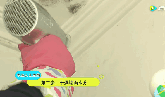 如果条件允许,也可以用吹风机代替干毛巾,干燥效果会好一些,用手碰墙面,觉得已经干燥后,就可以开始第三步。