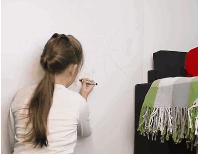 墙上的贴纸容易发黄、褪色,但是扣下来很麻烦,这时候我们只需要一个开启热风的吹风机,在贴纸上方加热。