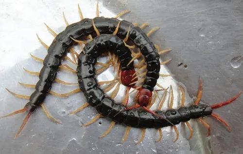 蜈蚣,也称作千足虫,在阴凉,潮湿,荒芜的沟渠和墙角比较多见。现在很多人晚上抓取蜈蚣拿去卖钱,一条能卖两块钱,有的人一晚上能抓几十只。