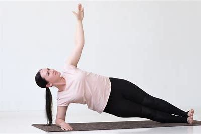 从坐姿开始,将右前臂放到地面上,臀部转向一侧,双腿伸直,双脚可以重叠或排成一行,以获的更多支持。这里的重点是加强脖子的锻炼,所以可以根据自己舒服的感受来自由向上或向下凝视。保持这个姿势五到十次呼吸之后,进入反侧重复。