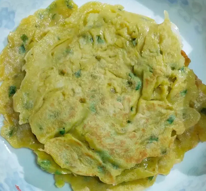 6.人参果鸡蛋煎饼。这个跟我们平时做的煎饼一样,只不过就是把人参果打成汁子放进面浆里。加入鸡蛋葱花盐。摊成薄薄的煎饼即可。