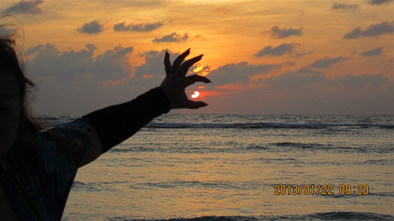 第三天,早上四五点,被老婆叫起床陪她去看海滩日出。