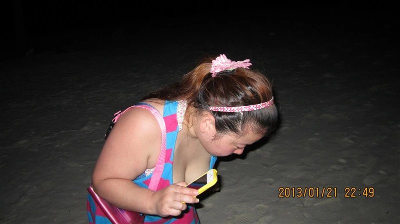 傻老婆在打手电抓寄居蟹