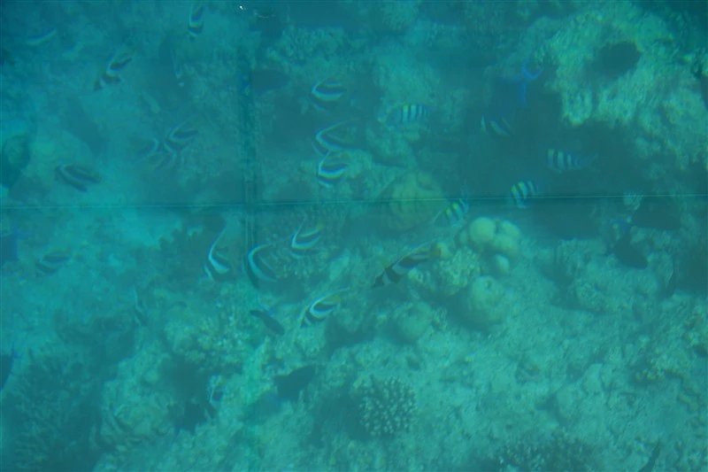 隔着玻璃船底拍照效果不太好。