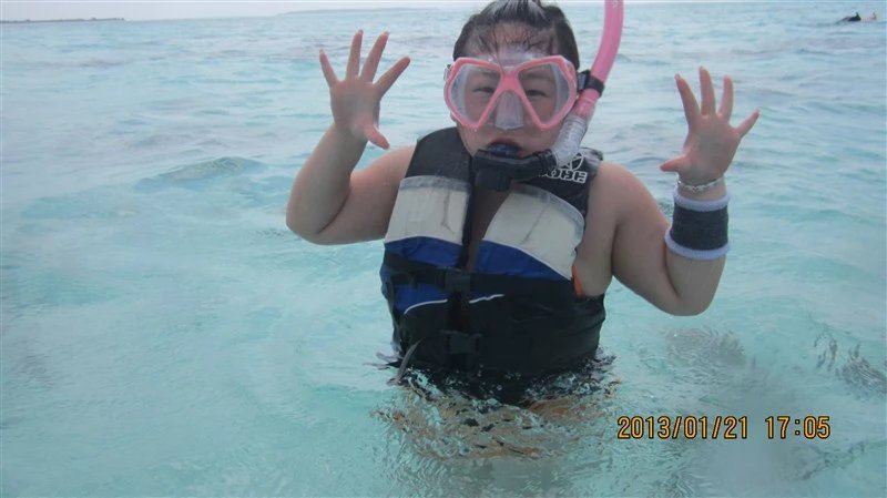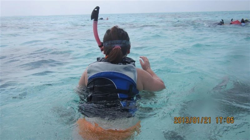 吃过早餐后,向酒店订了一个出海浮潜的项目,具体多少金额忘了。酒店开来一个游艇,拉着我们出海了大约半小时,到浮潜的地方,有教练带着我们进行浮潜,负责给予我们有限的教导以及负责我们安全。浮潜设备是我们从国内淘宝上买的带过去的。海水很清澈,可见度很高,潜下去后可以看见很多色彩斑澜的小鱼和珊瑚,珊瑚很锋利,我腿上还被割了一个口子。