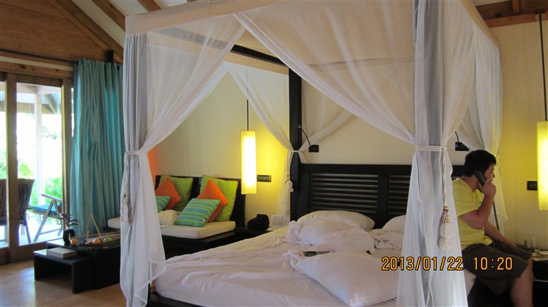 第四天,上午休息,因为想多玩几个岛,我在幸福岛只订了三天。从22日起后面要换到另外一个岛,Kurumba,中文名称“椰子岛”,或者“马尔代夫环球度假村”,该岛订的房价1010美元/天,我订了两天。