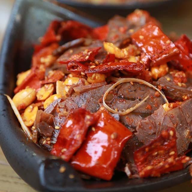 这应该是大学路上生意最好的一家了,每次去门口都排满了人。环境颇具异域风情,门口挂满了灯笼,里面暗暗的很有情调。是改良之后的云南菜,东西普遍的重口味,尤其是哈尼呛香鸡,酸酸甜甜,非常合小编的口味。上图是招牌菜搅合搅合,这道菜名字很好玩,其实是特制的辣椒拌牛肉牛筋,看似辣其实还好,辣椒脆香,牛肉牛筋薄片微辣,很是入味。