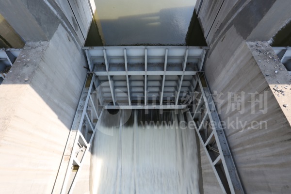8月24日,冶源水库附近村民告诉记者,冶源水库水位之高,及闸门出水口水流之湍急,前所未见。(《中国经济周刊》记者 胡巍 I 摄)