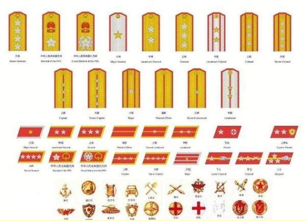 (解放军1955式军衔肩章、领章和兵种符号)