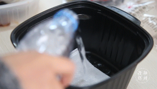 再将加热包的透明外袋撕掉,放进外盒的底层,加入凉水至注水线处,或没过加热包2/3处。上层盒子加水至刻度线处,水要没过食物。