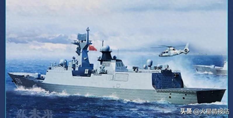 055型驱逐舰(北约代号:刃海级)是中国研制的新型舰队防空驱逐舰。中国首艘055型导弹驱逐舰2018年8月24日上午离开上海江南造船厂码头,进行首次海上测试。在航母战斗群中,055型驱逐舰承担编队防空、反舰、反潜和遂行对陆攻击作战任务。055型驱逐舰作战系统配置上具有较为先进的电子武器装备,根据055型驱逐舰的作战使命的定位,采用顶层设计,层层分解的方式,优化架构的合理性和集成度,指挥与控制一体化。实现标准信息、通用基准完全共享,设备小型化、通用化、集成化、标准化。在雷达、电子对抗及通信天线的高度集成化的条件下,舱面电子设备布局将会非常简练,而开放式通用接口显控机柜给后续升级工作带来便捷。在作战流程上,简化指挥层级,减少战位,减轻操作人员的工作强度。