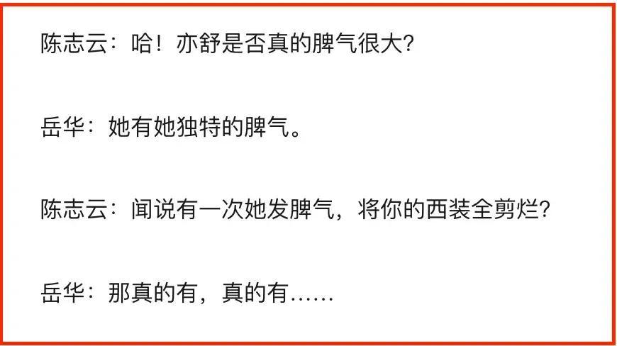 她偶尔在报纸上看到关于岳华和郑佩佩的往事,就会忍不住醋意大发,将岳华的西装全部剪烂……