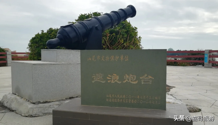 炮台公园,位于汕尾市城区红海湾遮浪半岛旅游区正南方的炮台山,是南澳半岛南端的突出部分,东、西、南三面临海,地形险要,视野广阔。公园里的遮浪炮台是清康熙十年(1671)建置的海防炮台,康熙五十六年(1717)添建驻兵营房。炮台及兵营四周的护墙用花岗岩石块砌筑,墙宽2.2米,残高2.5米,四面周长123米,面积900多平方米。炮台正面有十级石砌台阶,上面设有东、西、南临海三个方向的炮位,各炮位长3.5米,宽1.3米,均为灰沙夯筑而成。各炮位之间有通道,炮台北侧与兵营相连,分设营房8间,配置海防火炮8门。该炮台与东南沿海其它高地上的炮台、烟墩组成较为严密的海防军事网络,在清代的海防中发挥了重要作用,目前仅剩大门和兵营及烽火台的遗址。