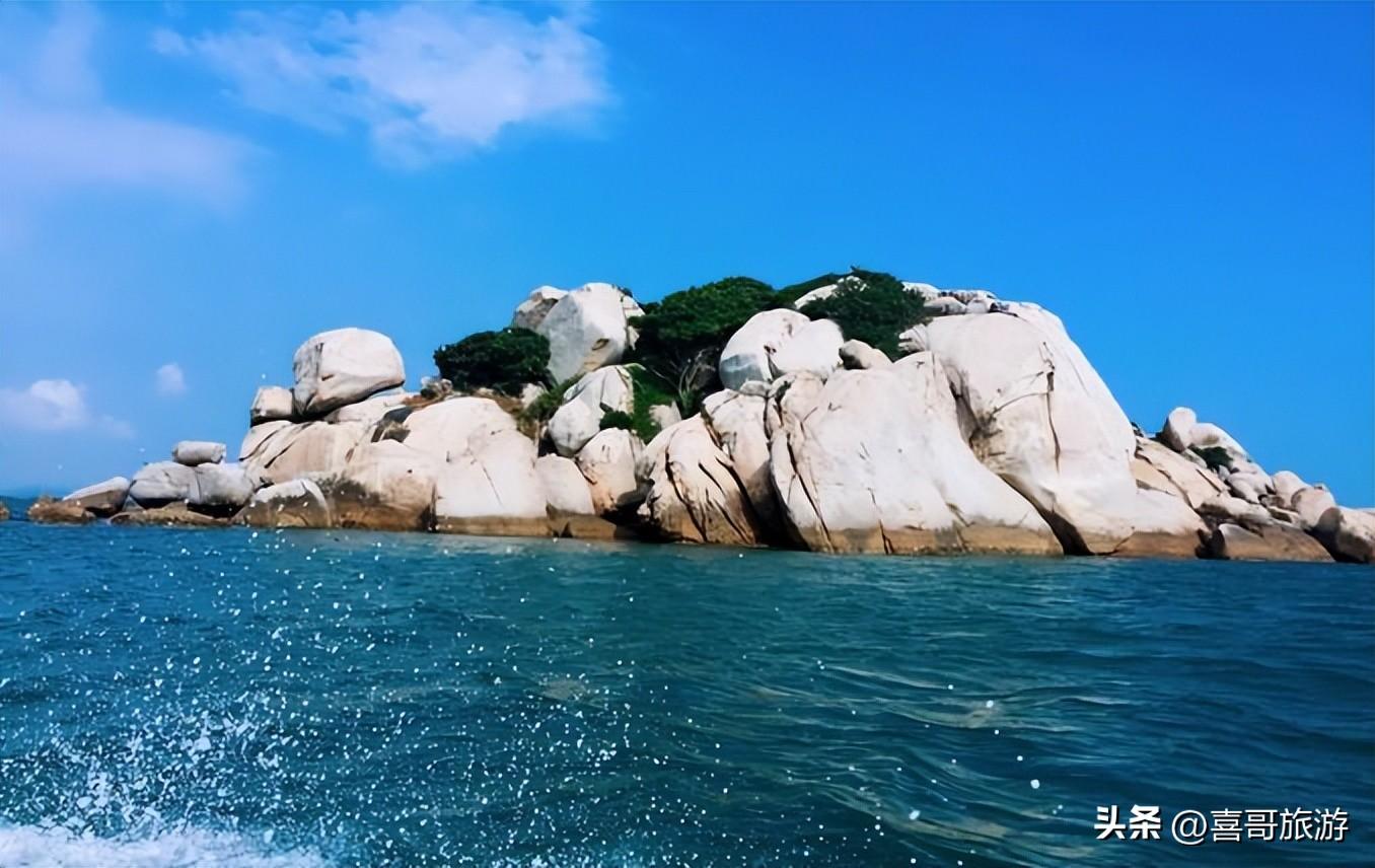 龟龄岛,位于汕尾市城区捷胜镇南面海岸对开海面。龟龄岛与周边牛皮洲、赤腊、鹰屿、青屿和捞投屿等五个小岛及一些明礁相呼应成为岛群。龟龄岛岛型奇特,酷似一只凫水的乌龟,乌龟头朝西,龟身向东侧横卧在海面。岛上有两座同峰分踞东西两侧,东侧主峰海拔53.6米,山体形若龟背(龟身);西端为次高峰,海拔22.8米,状若龟头,其下有一面积约为3平方米的海蚀平台。次峰为风化成巨石垒叠的花岗岩,形成似南天门、羊回头、卧佛、蘑菇石等逼真的风景地貌。岛上建有一座妈祖庙,流传有妈祖显灵的故事,常有香客坐船前往求平安。岛上有一口从不枯竭的淡水井,被老渔民们神话演义成古时一位神仙南海游览,一时尿急就撒在此井口处,当即甘泉涌出,永不枯竭。