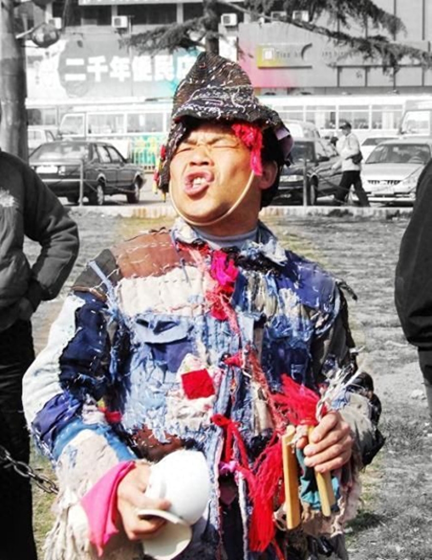 宋天福说,他这并非乞讨,而是民间艺术。他虽然穿得很破,但是这些破衣服,他都洗得干干净净。和赵本山穿的蓝布衣服一样,只是一个行头。