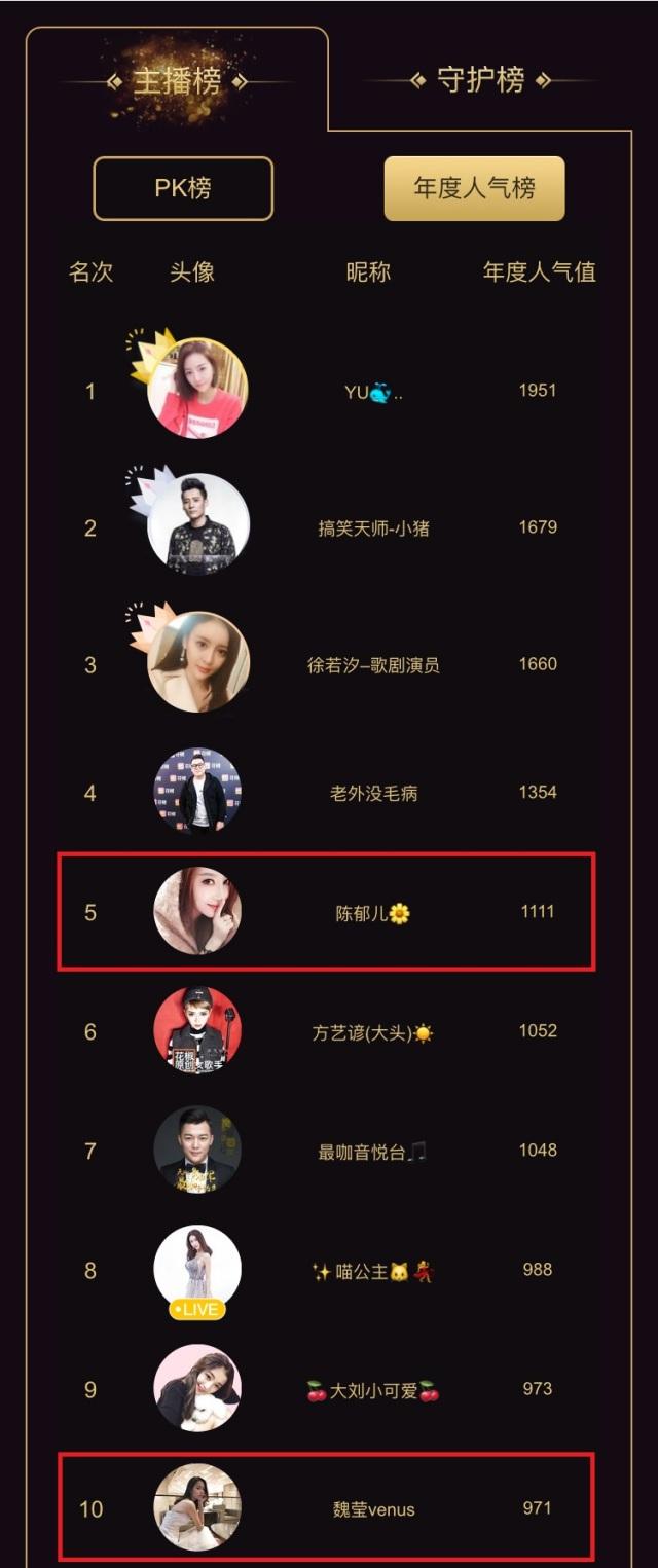 在此次花椒年度中,豚首艺人“陈郁儿”、“魏莹venus”大放异彩,双双晋级花椒年度十大人气主播,成了平台的吸金神器!