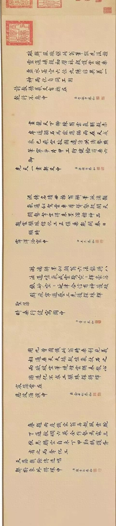 陈容的《六龙图》被乾隆帝的《石渠宝笈续编》评为水平极高的重要作品。估价为120万-180万美元,画幅纵440.7厘米,横34.3厘米,书法尺幅纵83厘米,横35.1厘米。作品上有南宋理宗皇帝和诸大臣的题跋以及陈容自题的古诗一首。此卷代表了南宋时期画龙的最高水平,在中国绘画史具有举足轻重的地位。此巨幅杰作的绢质和色泽都十分完好,品相完整,堪称陈容作品的标准件。