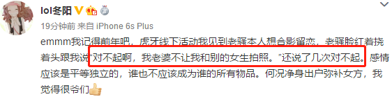 这其实也是坐实了骚男疼老婆的事实,人设崩塌什么的基本不存在。