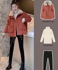 示范搭配:白色高领毛衣+橙色长裤+白色运动鞋