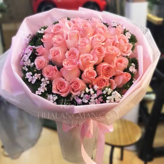 33朵粉玫瑰花束【来自送花品牌:花浪漫】