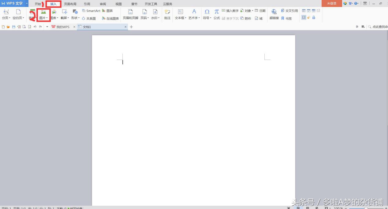 图片找好之后,我们要做的就是打开一个空白的Word文档,然后点击“插入”进入到插入选项页面,在页面中找到“图片”一项,并选择点击。