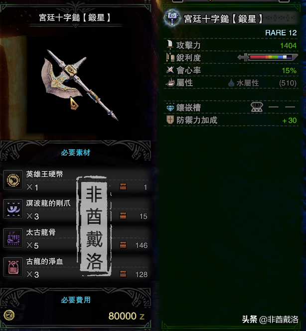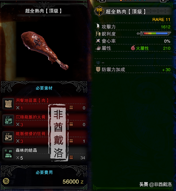 奖励:可产出用餐地区票【肉】,制作以下这把大锤,包括制作与强化一共需要3张票。