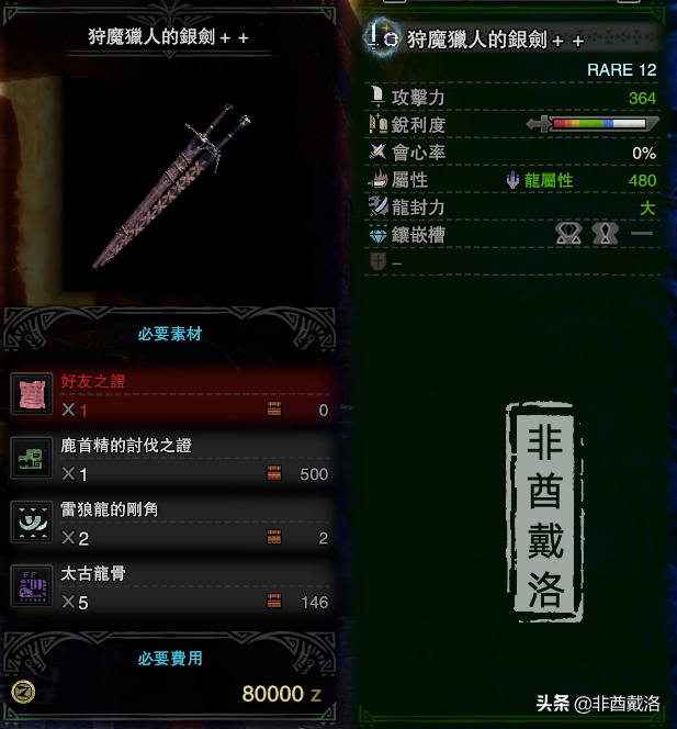 奖励:可产出【冷冻票券】,制作以下这把大剑,包括制作与强化一共需要5张票。