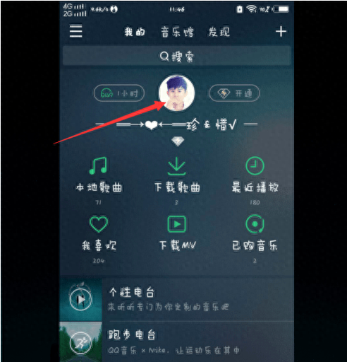 2.打开QQ音乐以后,我们会看到自己的QQ头像,然后,点击自己的QQ头像,就来到了自己的“音乐馆”,这里会有我们自己的评论、喜欢的歌曲、那年今日、还有自己创建的歌单等等。