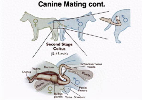 而正是这个情况,导致狗狗交配后,还会连在一起分不开。