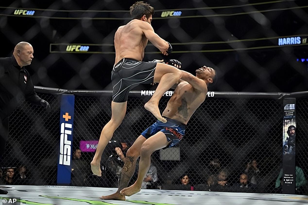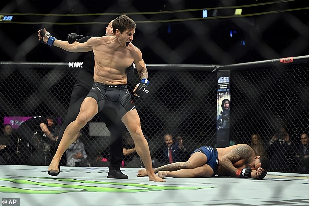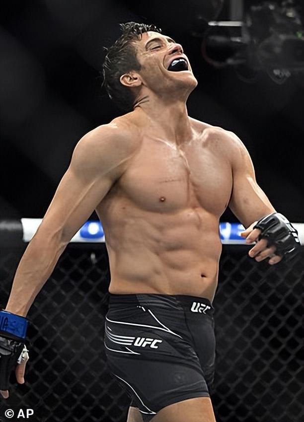 周六,他在擂台上穿着紧身的黑色短裤,炫耀着自己的搓衣板腹肌和隆起的大块肌肉,还有暴起的青筋,给观众带来了一场热烈异常的 UFC 表演赛。