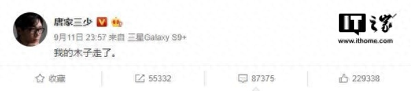 IT之家9月12日消息 昨日深夜,知名作家唐家三少发布微博消息:“我的木子走了。”,宣布了妻子李默过世的消息。
