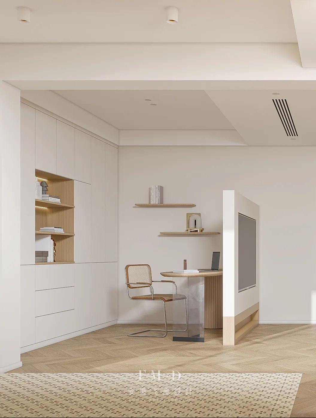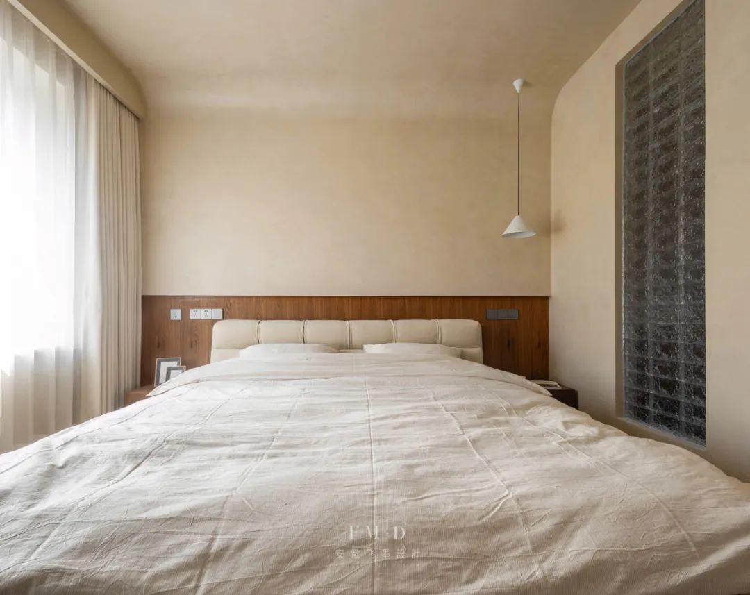 整体柔和美好,不要选太浓烈的颜色,尽量选择柔和一点的暖色系。好的配色只是设计的一个维度,整体氛围感的营造,选择合适的家居材质也很重要。