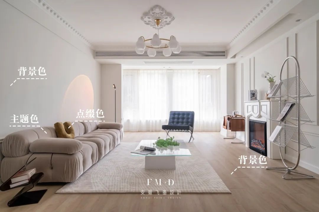 背景色,墙顶地的颜色;主题色,主要家具的颜色;点缀色,软装的颜色。
